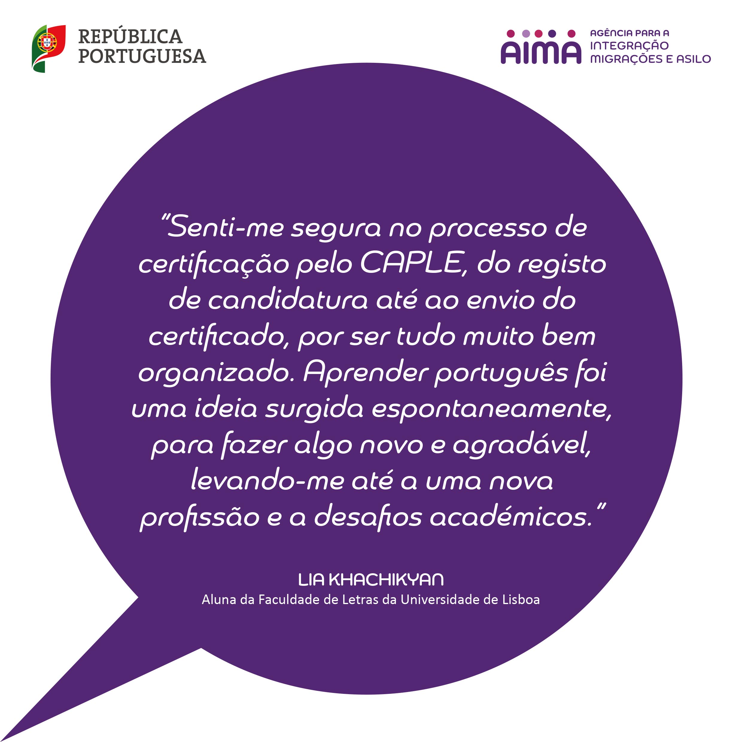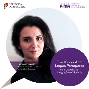 Por ocasião da efeméride, a AIMA vai publicar nas redes sociais diversos testemunhos, de diferentes atores envolvidos no ensino-aprendizagem da língua portuguesa, durante o mês de maio, com o objetivo de sensibilizar para a importância da aprendizagem da língua portuguesa. A série é inaugurada com o testemunho de Lia Khachikyan, Aluna da Faculdade de Letras da Universidade de Lisboa: