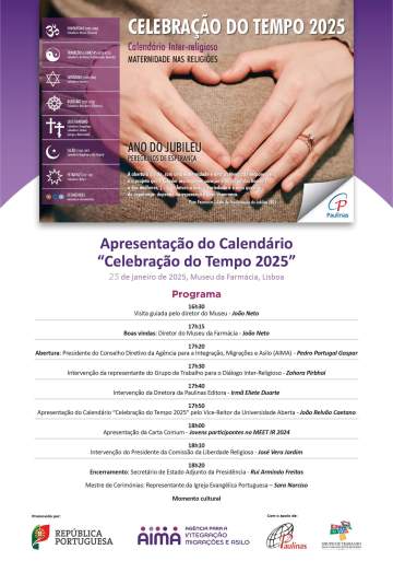 A AIMA, na qualidade de membro do Grupo de Trabalho para o Diálogo Inter-Religioso, está a promover o lançamento e divulgação do Calendário Inter-Religioso “Celebração do Tempo 2025”, uma edição fruto da parceria entre a AIMA e a Paulinas Editora que este ano celebra a "Maternidade nas Religiões".