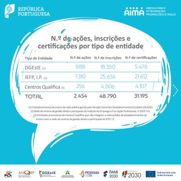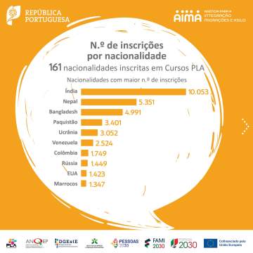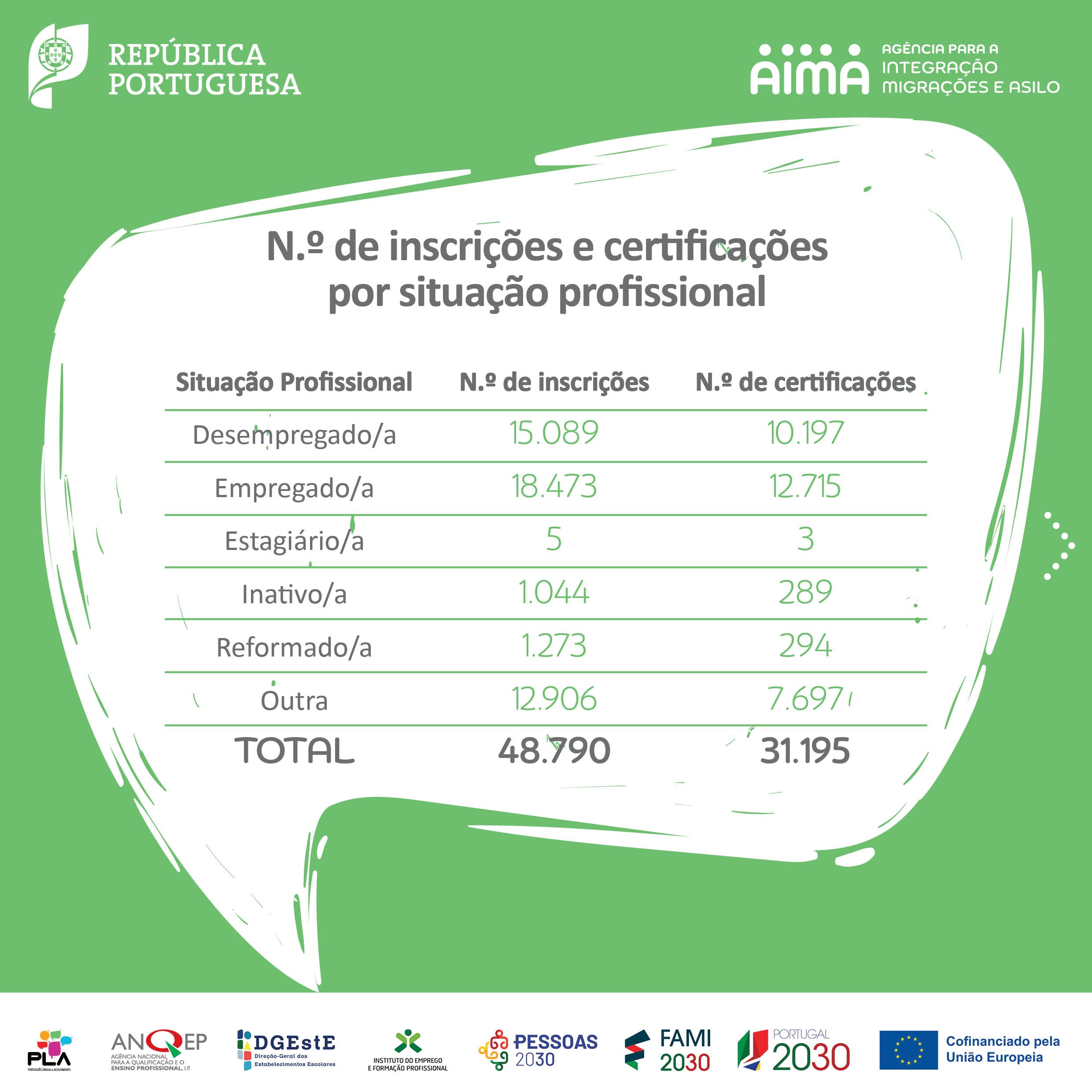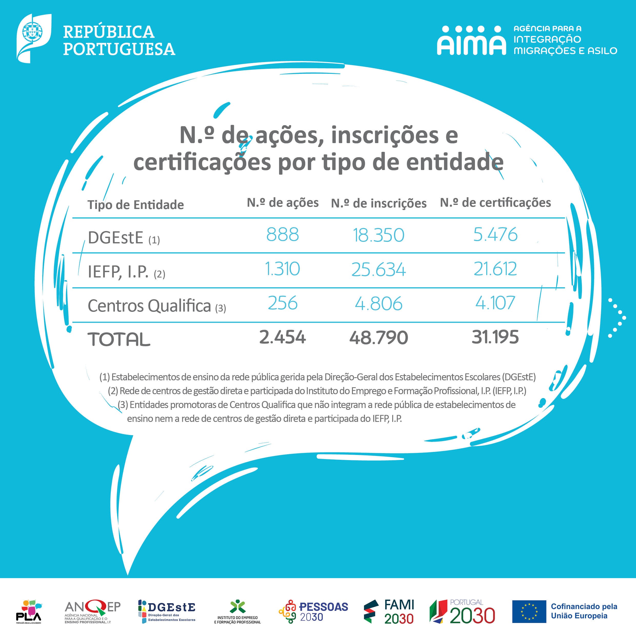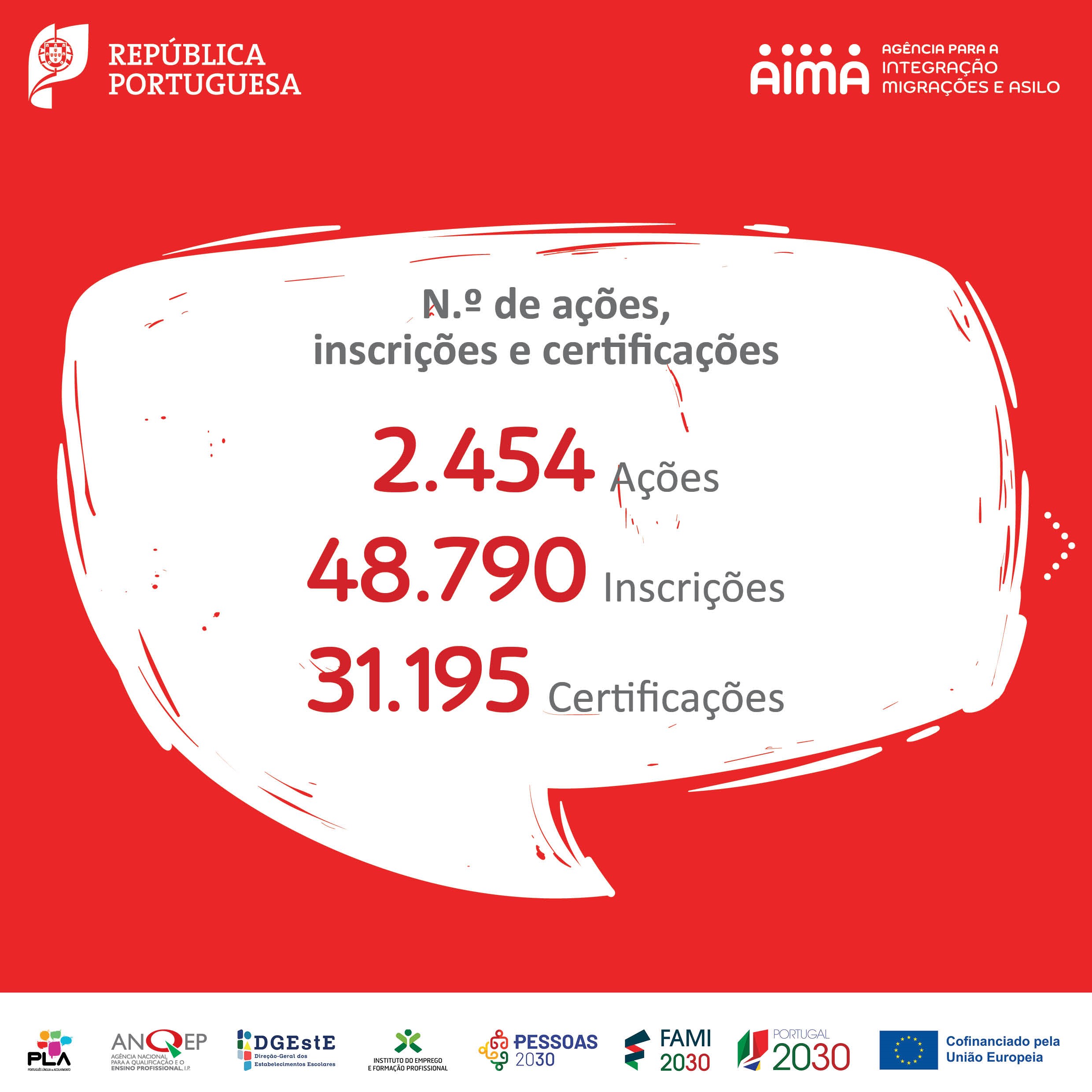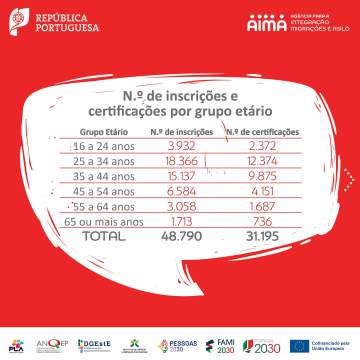 No âmbito das comemorações do Dia Mundial da Língua Portuguesa, 5 de maio, partilhamos a infografia sobre os cursos de Português Língua de Acolhimento (PLA) com o balanço da execução referente ao ano de 2024, produzida pela AIMA, em colaboração com a Agência Nacional para a Qualificação e o Ensino Profissional (ANQEP), a Direção-Geral dos Estabelecimentos Escolares (DGEstE) e o Instituto do Emprego e da Formação Profissional (IEFP).