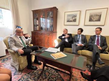 Acompanhado pelo vogal do Conselho Diretivo, Dr. César Teixeira, e pelo Diretor do Departamento de Acesso Omnicanal, reuniu com o Diretor Regional das Comunidades e Cooperação Externa, Dr. Sancho Gomes.