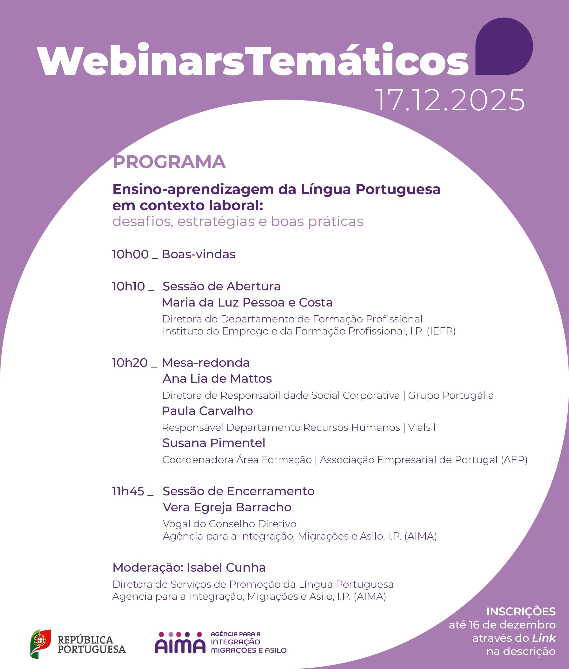 • “Ensino-aprendizagem da Língua Portuguesa em contexto laboral: desafios, estratégias e boas práticas” | 10h00 – 12h00